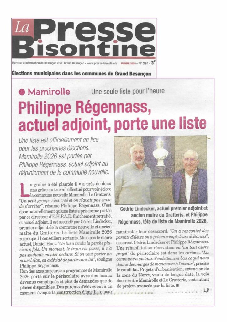Article de la Presse Bisontine pour la liste Mamirolle 2026